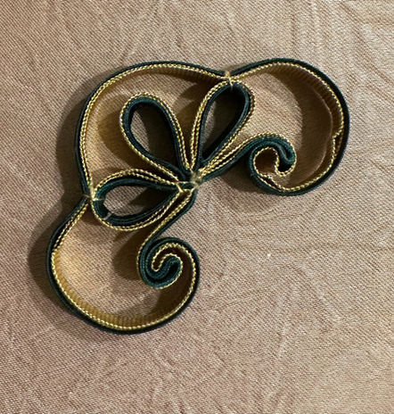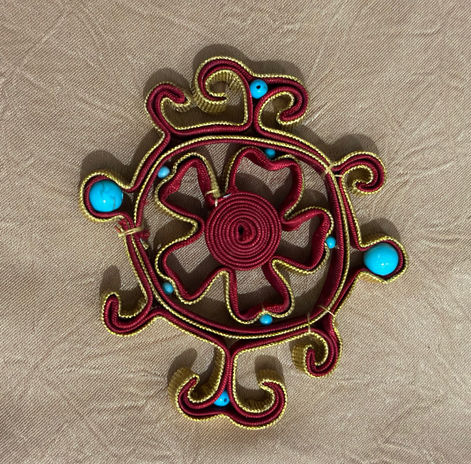 我从佛像上精巧的装饰品和传统服饰独特的图案中汲取灵感。这促使我创新性地将这些设计与中国的非遗产手工盘线纽扣技艺相结合,从而实现多样化的应用,例如作为典当胸针或手镯。我投入了大量时间和精力于此项目,不断完善创作方法以达成有意义的成果。